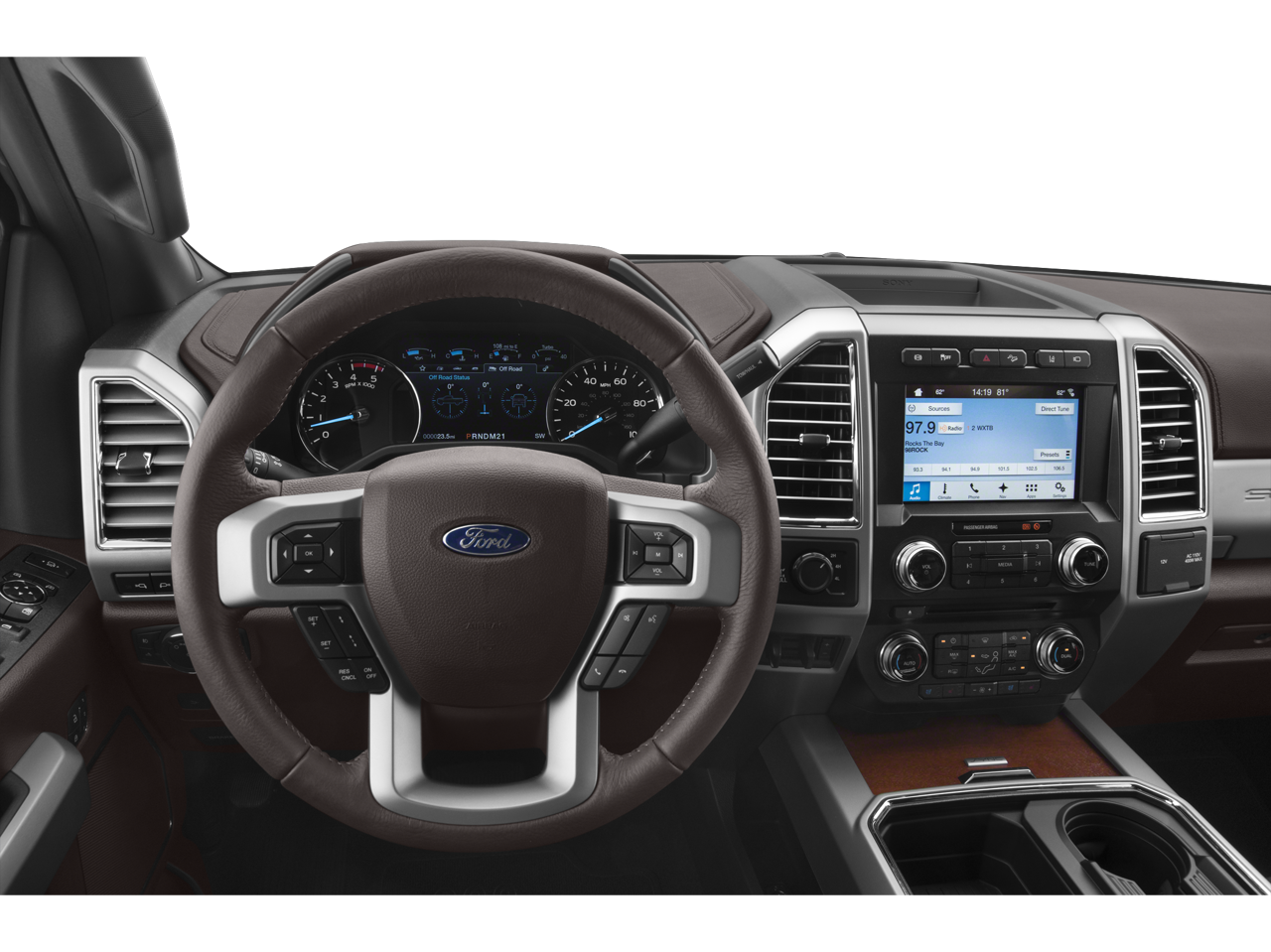 Stepping inside the King Ranch interior, you'll be enveloped in luxurious leather seating and premium materials that elevate the driving experience. The SYNC 3 infotainment system with navigation and the premium B&O sound system ensure you stay connected and entertained on every journey.