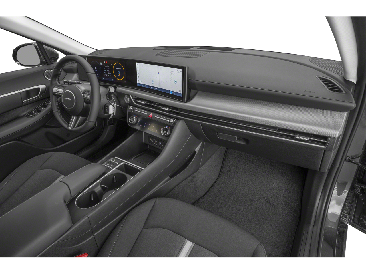 - Radio: AM/FM/HD/SiriusXM/Navigation -inc: 12.3" HD touchscreen, 6 speakers (2 front door mounted speakers, 2 tweeters and 2 rear speakers), smartphone integration, rear view camera and Dynamic Voice Recognition, Bluetooth®, Over-The-Air updates, USB connectivity, Blue Link+ connected car, Android Auto/Apple CarPlay capability (wireless and wired) and shark fin design antenna w/SiriusXM reception